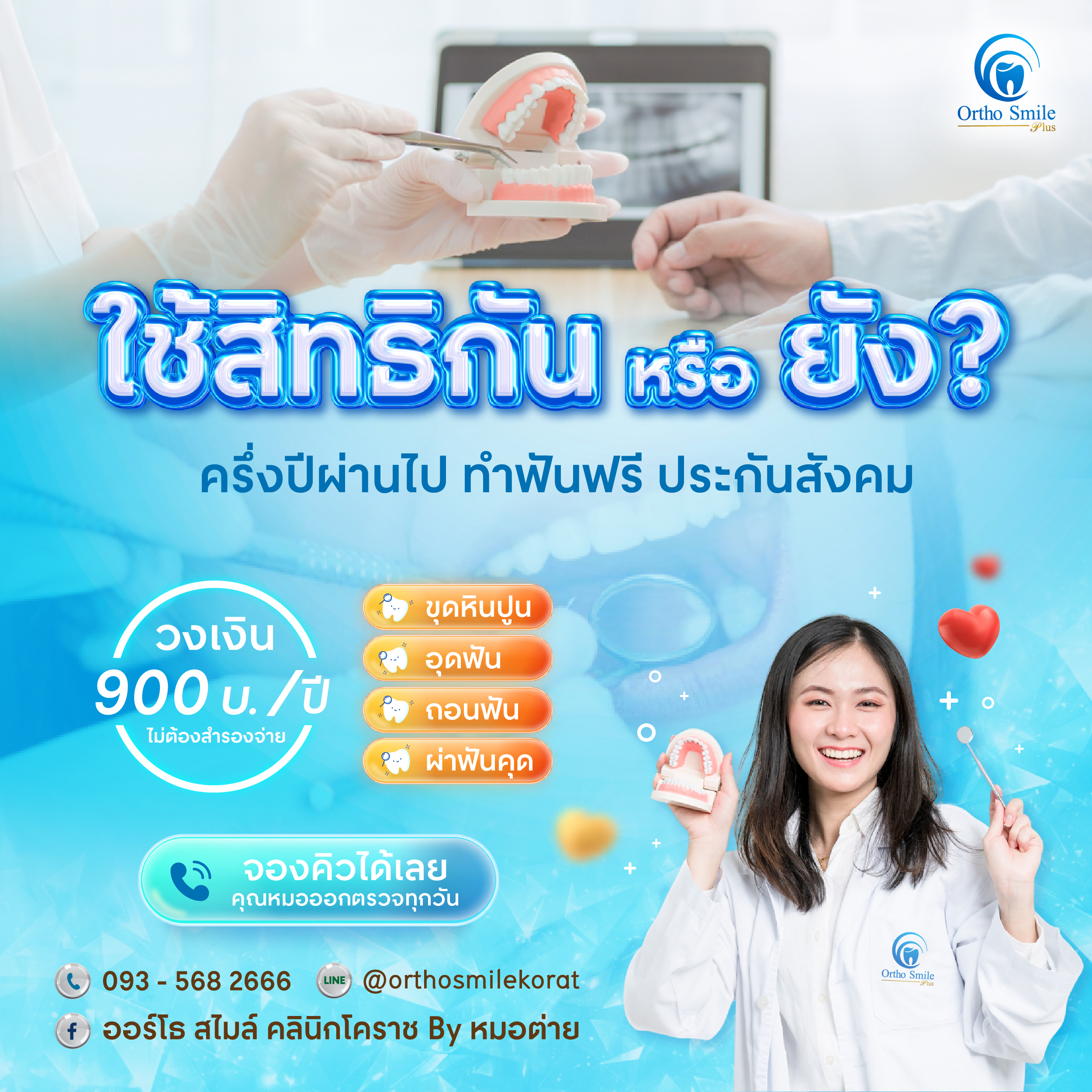 ทำฟันฟรี สิทธิประกันสังคม 900 บาท/ปี วันนี้ที่ ออร์โธ สไมล์ คลินิก